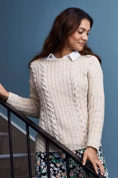 Modellen stickas fram och tillbaka i 4 delar, som sys ihop efteråt. Härefter stickas halskanten.
